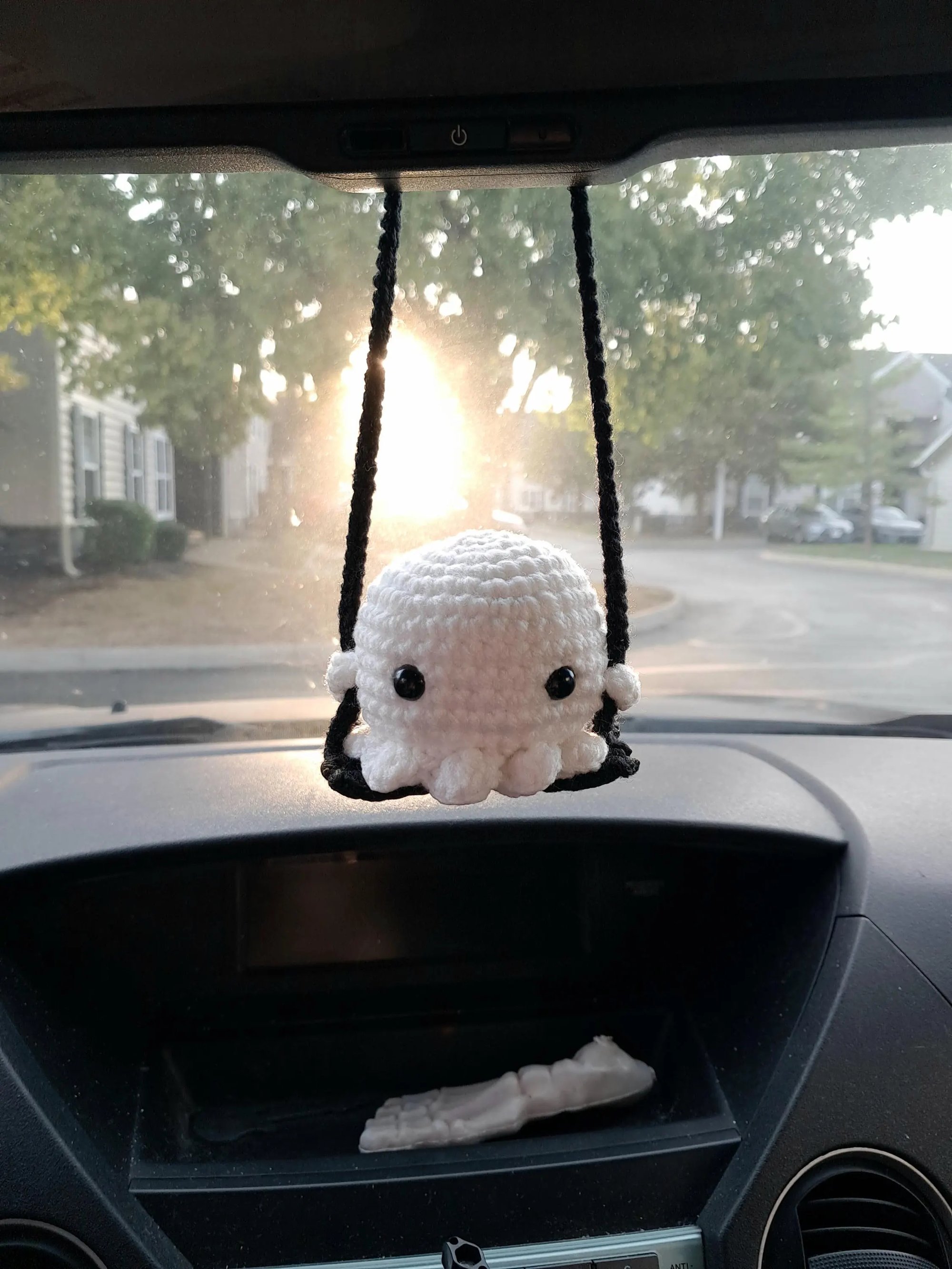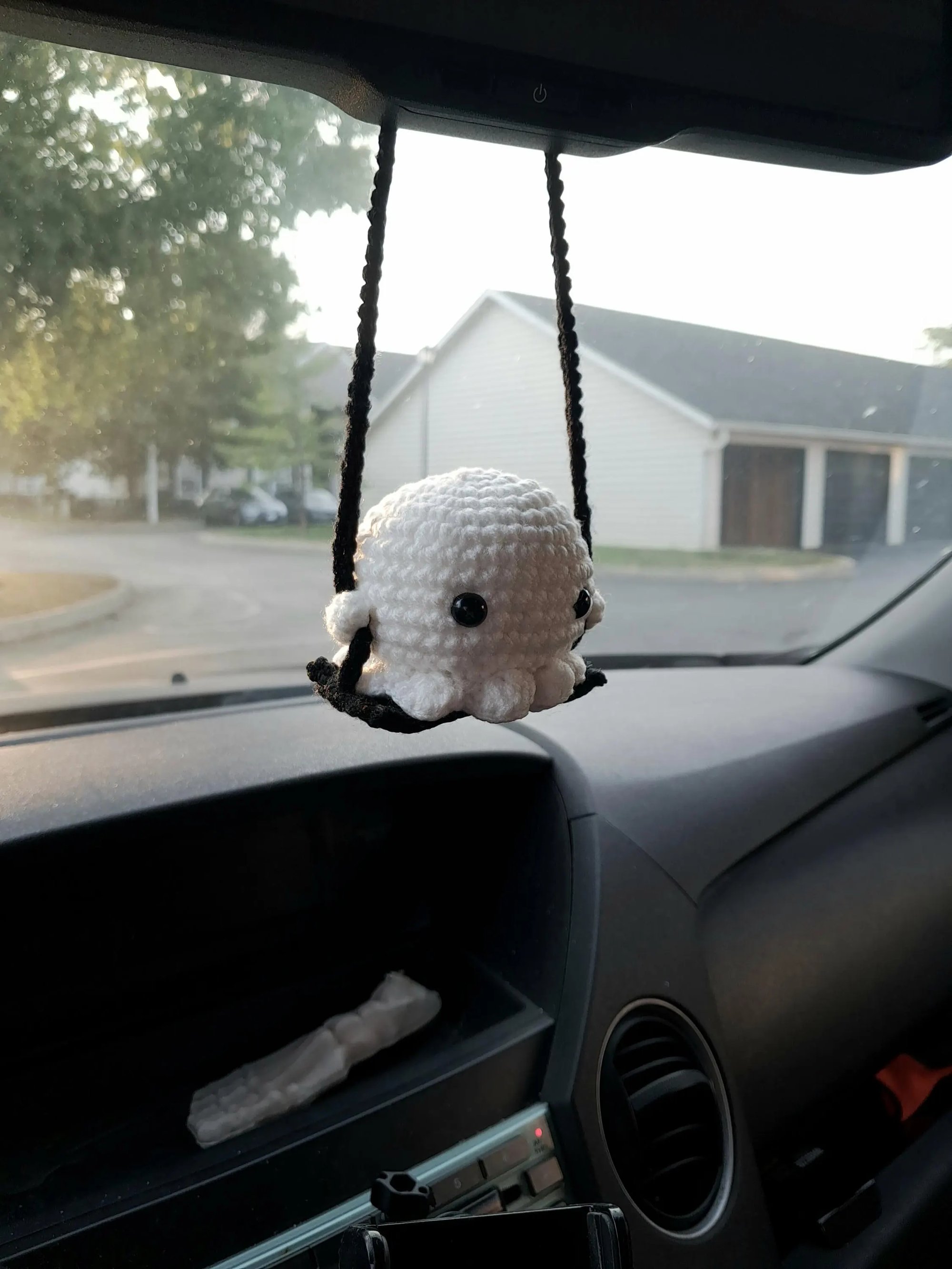 Each ghost is carefully crocheted with durable yarn, ensuring a lightweight yet sturdy charm that won’t distract while driving. The swing adds a rustic feel and helps the ghost sway gently with your car’s movement, bringing a subtle seasonal delight to your daily commute. Perfect for Halloween enthusiasts who want a handmade touch, this charm is designed to fit most rearview mirrors and can be customized by request.