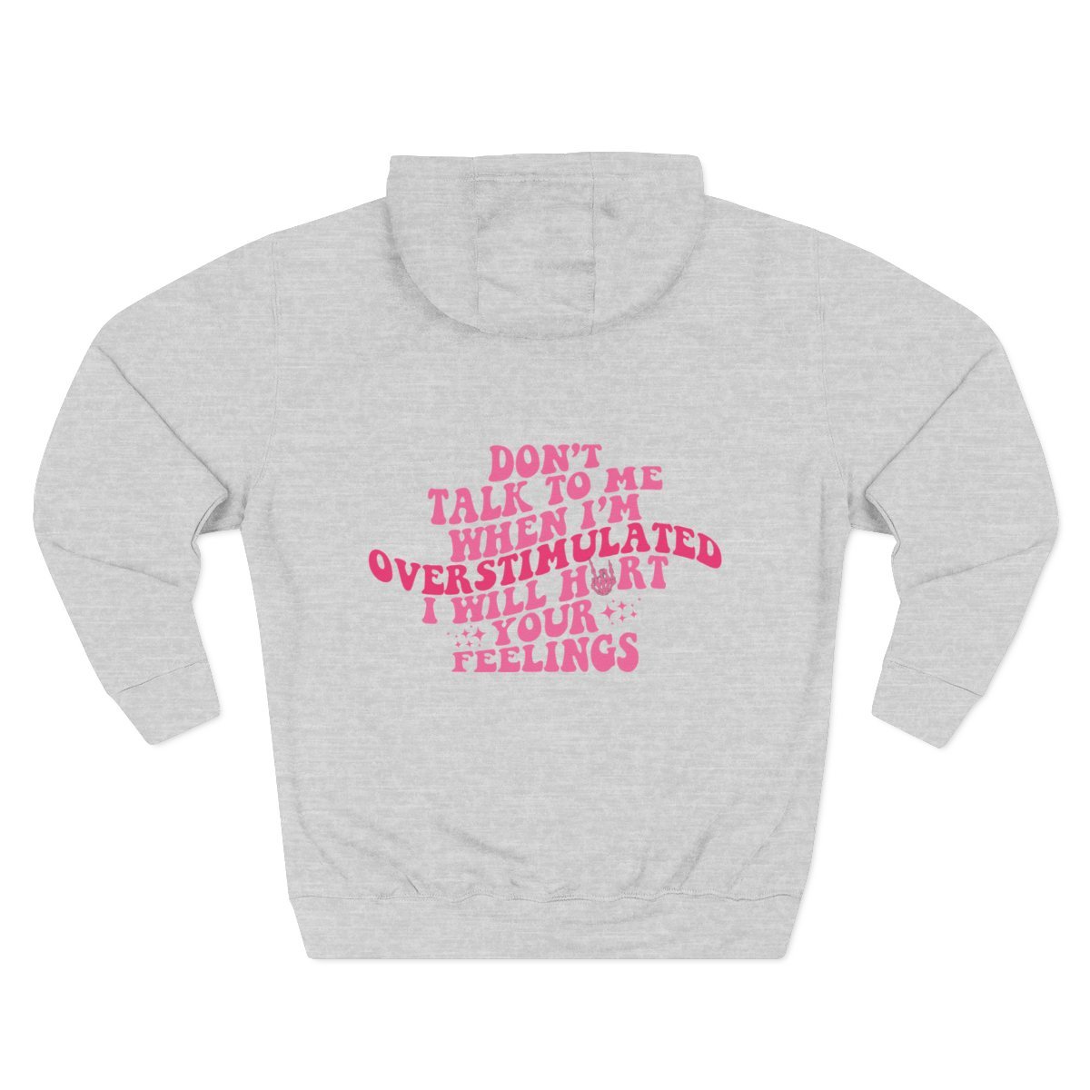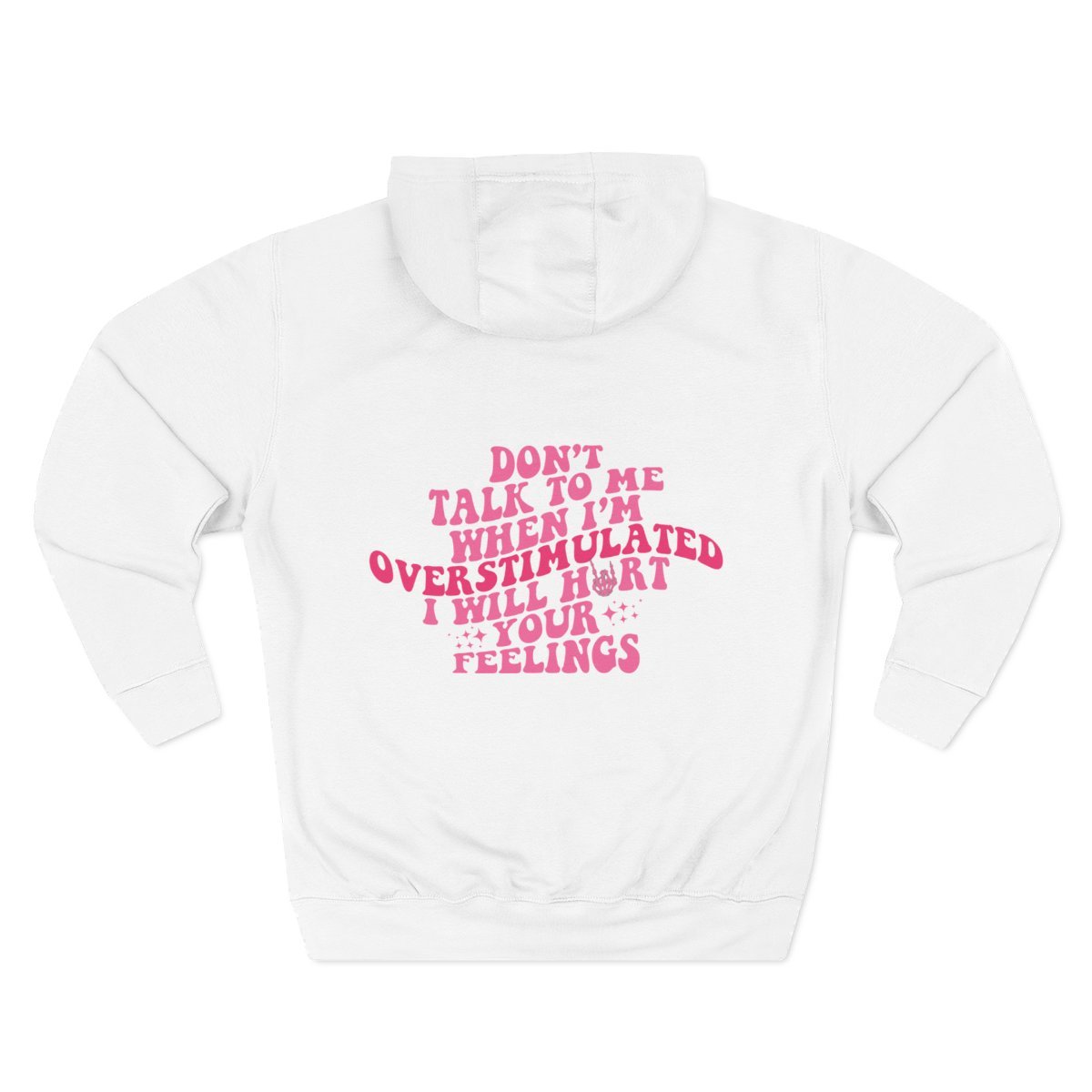 "Don't Talk To Me When I'm Overstimulated" Three-Panel Fleece Hoodie